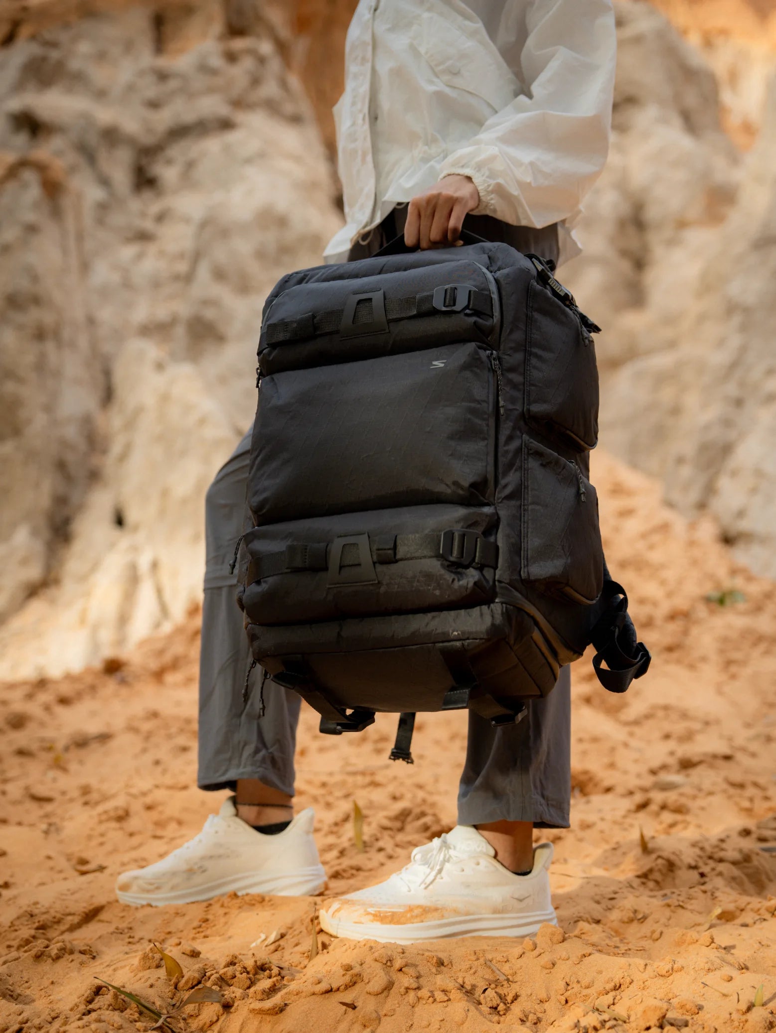 The Sakk Pack Cube is a scaled-down version of the V2, reduced by 35% for when you don’t need to bring it all. It’s built for lighter travel without compromising core functionality, allowing you to still bring your essentials whilst having a lighter/ smaller load.